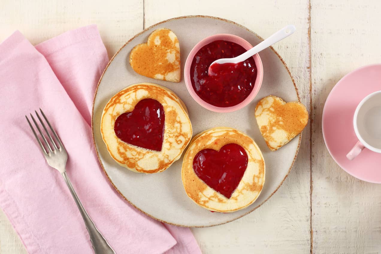 A legegyszerűbb, ha a díszítés szívecskés. Szív formát sütire vagy palacsinta tetejére igazán nem ördögösség rajzolni, és gyümölcsből (például eperből) sem bonyolult megformázni. A másik lehetőség a szívecske formájú süti, desszert. Persze itt is vannak magától értetődő ötletek, ha lapul a konyhaszekrényben szívecskés gofrisütő – márpedig ez az egyik legnépszerűbb típus Magyarországon –, adja magát a gofris reggeli vagy uzsonna. Hasonlóképp, ha van otthon szív alakú sütőforma vagy sütőkeret, tortában (és az ünnepelt kedvenc ízeiben) is gondolkozhatunk.