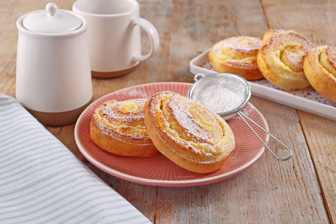 Sűrűbb pudingot főzz kevesebb tejjel, ezt megsütheted vagy keverd össze túróval. Így készül a túrós-vaníliapudingos csiga. Tölthetted leveles tésztás táskákba, párnákba, fonatokba is.